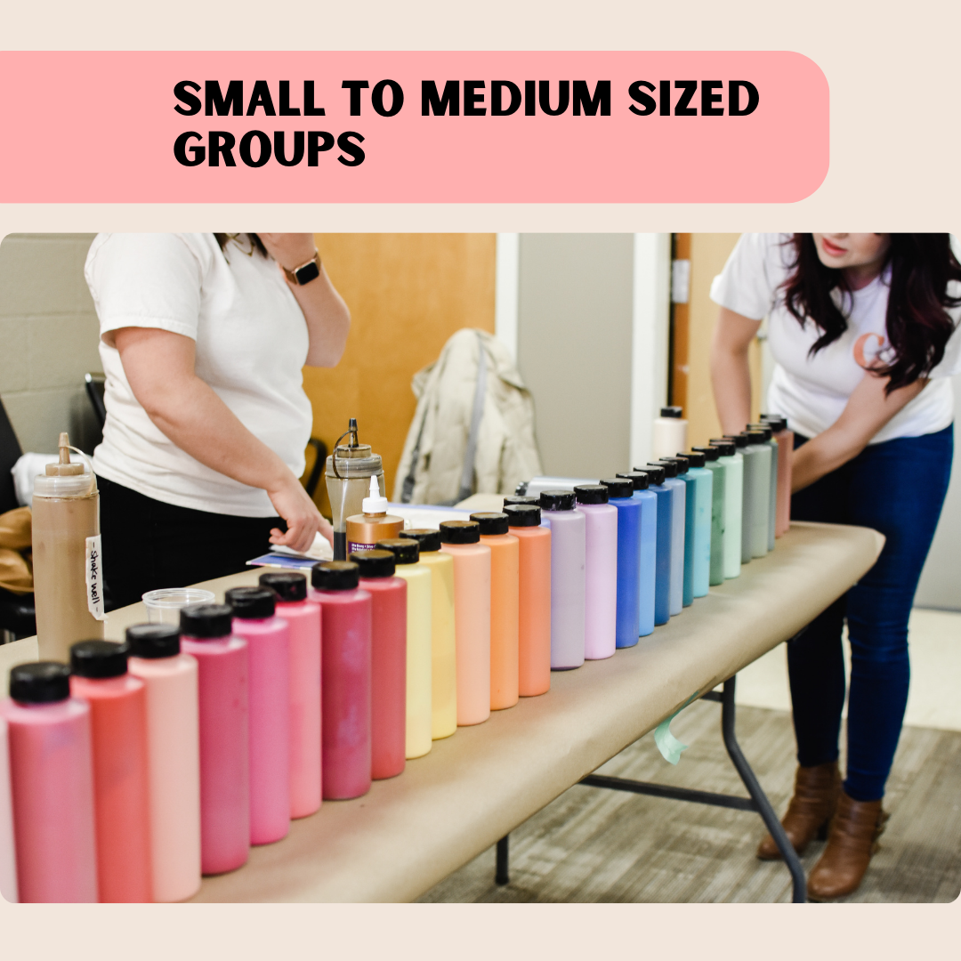 - Includes three of our trained team members for assistance with painting, glueing, and step by step directions, to ensure everyone enjoys themselves