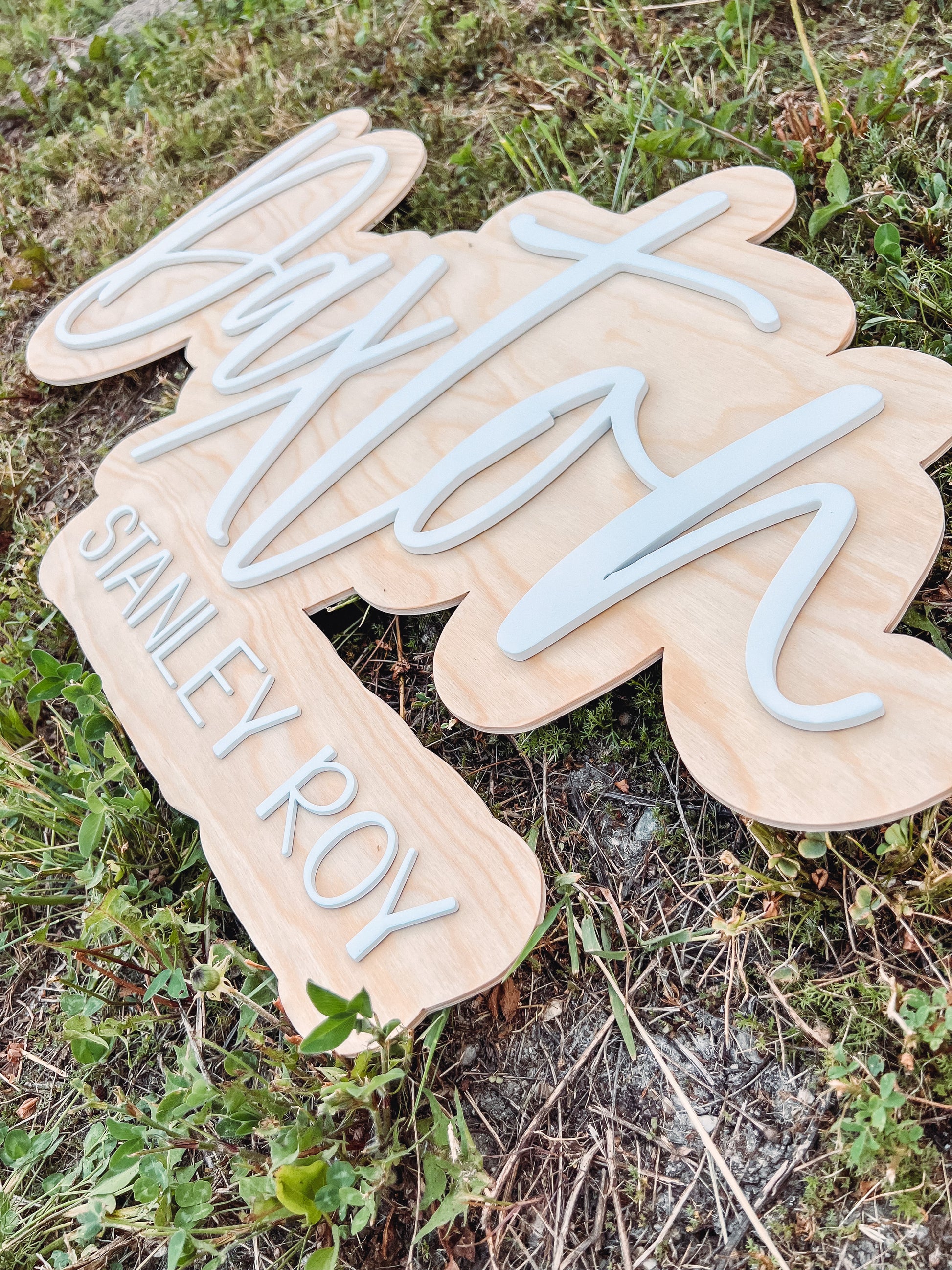 Welcome little one in style with this must-have bundle! Our Double Layered - First + Middle Name BUNDLE is the perfect way to add a personal touch to the nursery. Its two layers of premium handcrafted wooden signs, makes the set even more special.