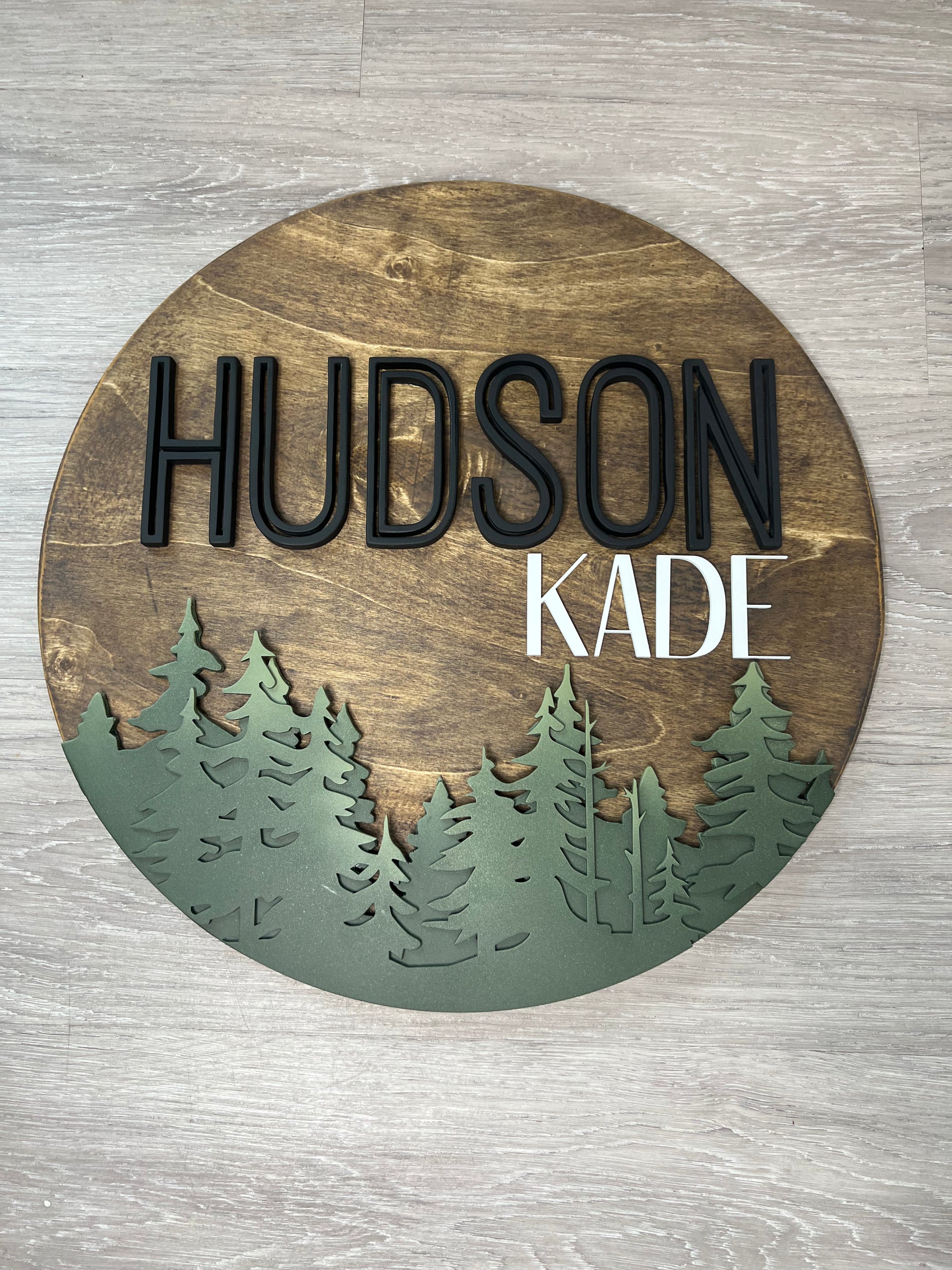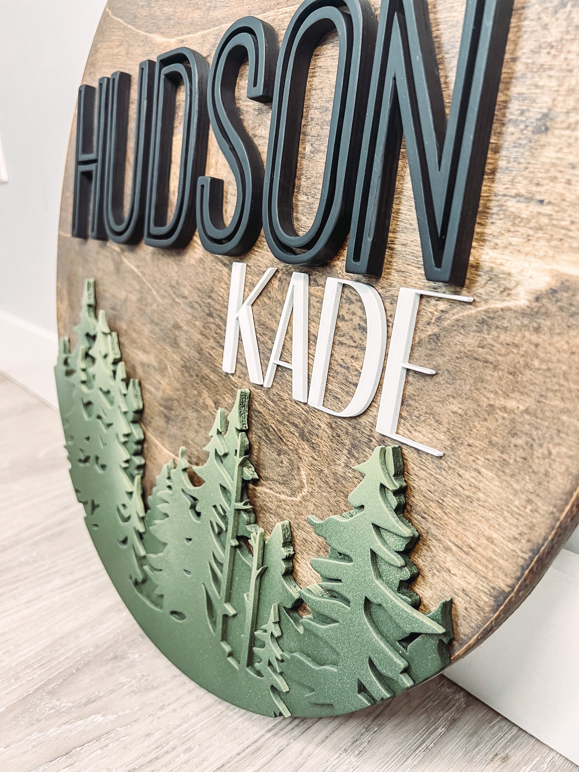 This elegant 3D Round sign is a beautifully crafted design featuring your child's name with a wooden finish. It adds a pleasant touch to your living space and makes a perfect gift for any occasion.